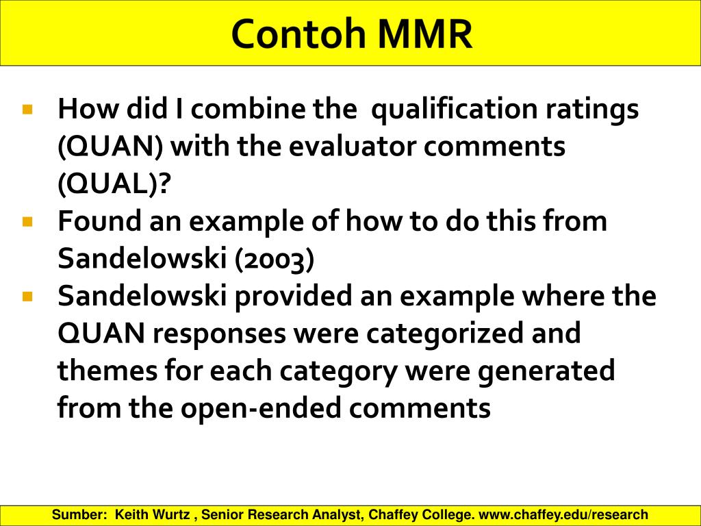 Contoh metode kualitatif adalah penelitian tindakan (action research), studi kasus, dan etnografi.